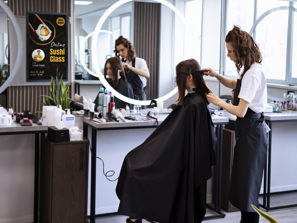 Promote special offers like coloring packages, hair treatments, and hairstyling consultations directly to your waiting customers, increasing service bookings